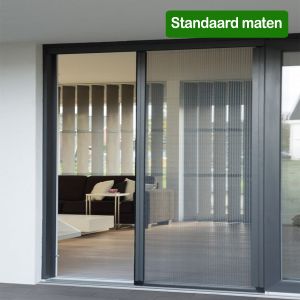 uitgevoerd in RAL 7047 grijs met zwart geplisseerd gaas.