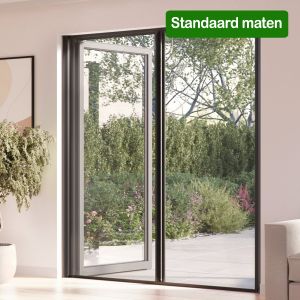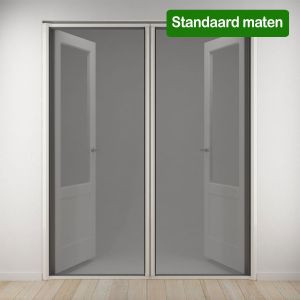 Deze dubbele rolhordeur is direct leverbaar in standaard maten met een framekleur naar keuze,