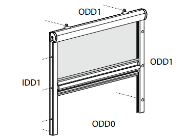 - Hoogte bij optie zonder sluitprofiel: dagmaat (B) + 70 mm (45 mm cassette + 25 mm overlap) = productmaat