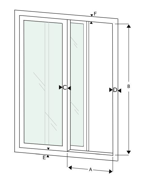 - Breedte van de kozijnen links en rechts (C + D) moet minimaal 15 mm zijn voor voldoende overlap